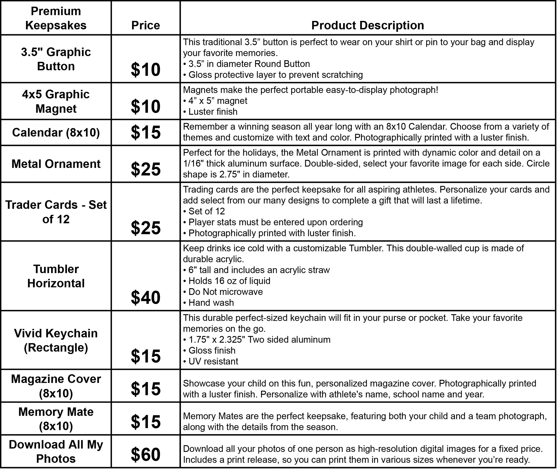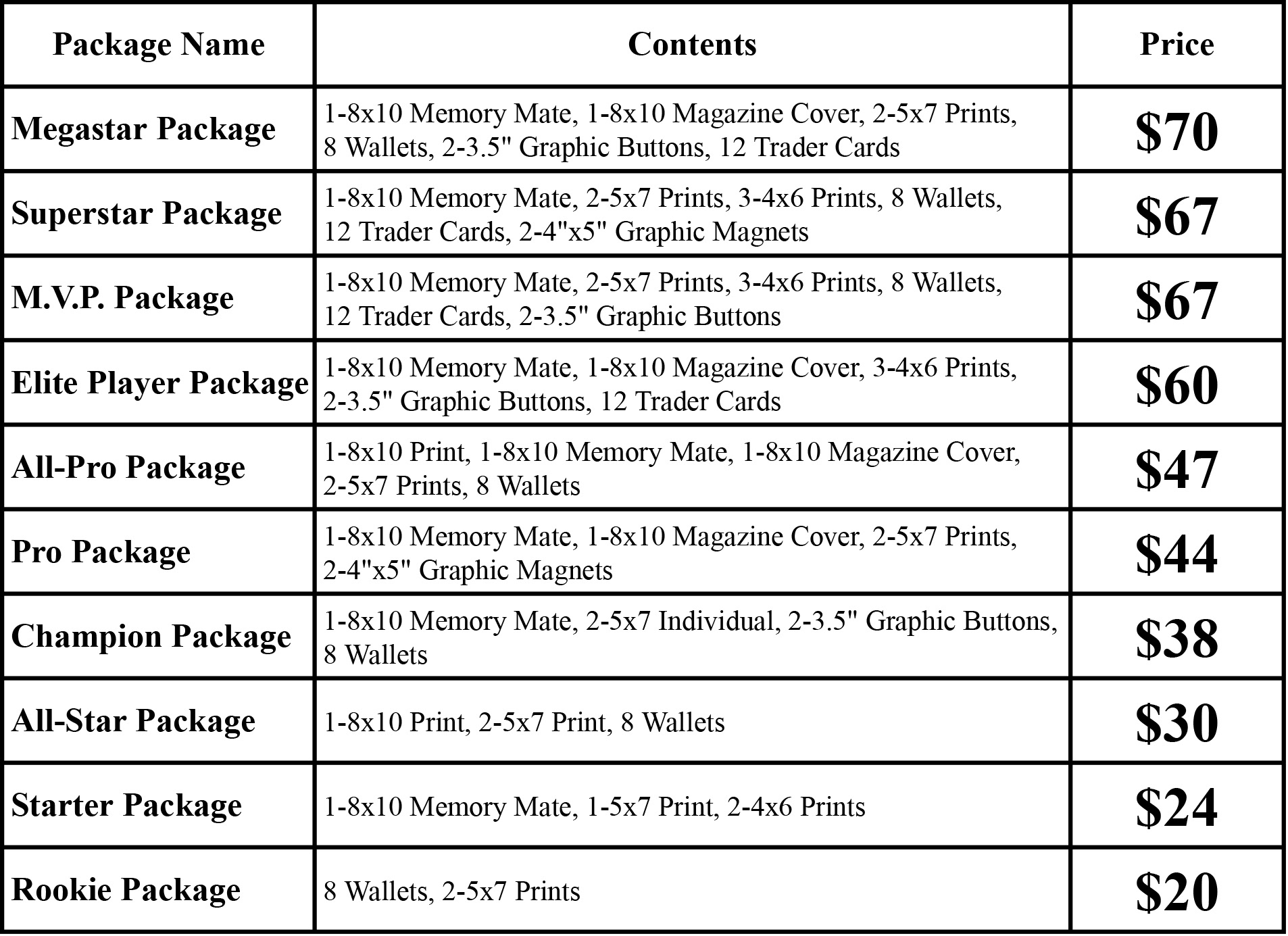 Please note: We don't charge a sitting or session fee. Instead, we have a minimum order of $500 for up to 20 participants (includes a 5×7 team/group picture for every participant & coach). For teams with more than 20 players, we simply add $25 to the minimum order for each additional player.