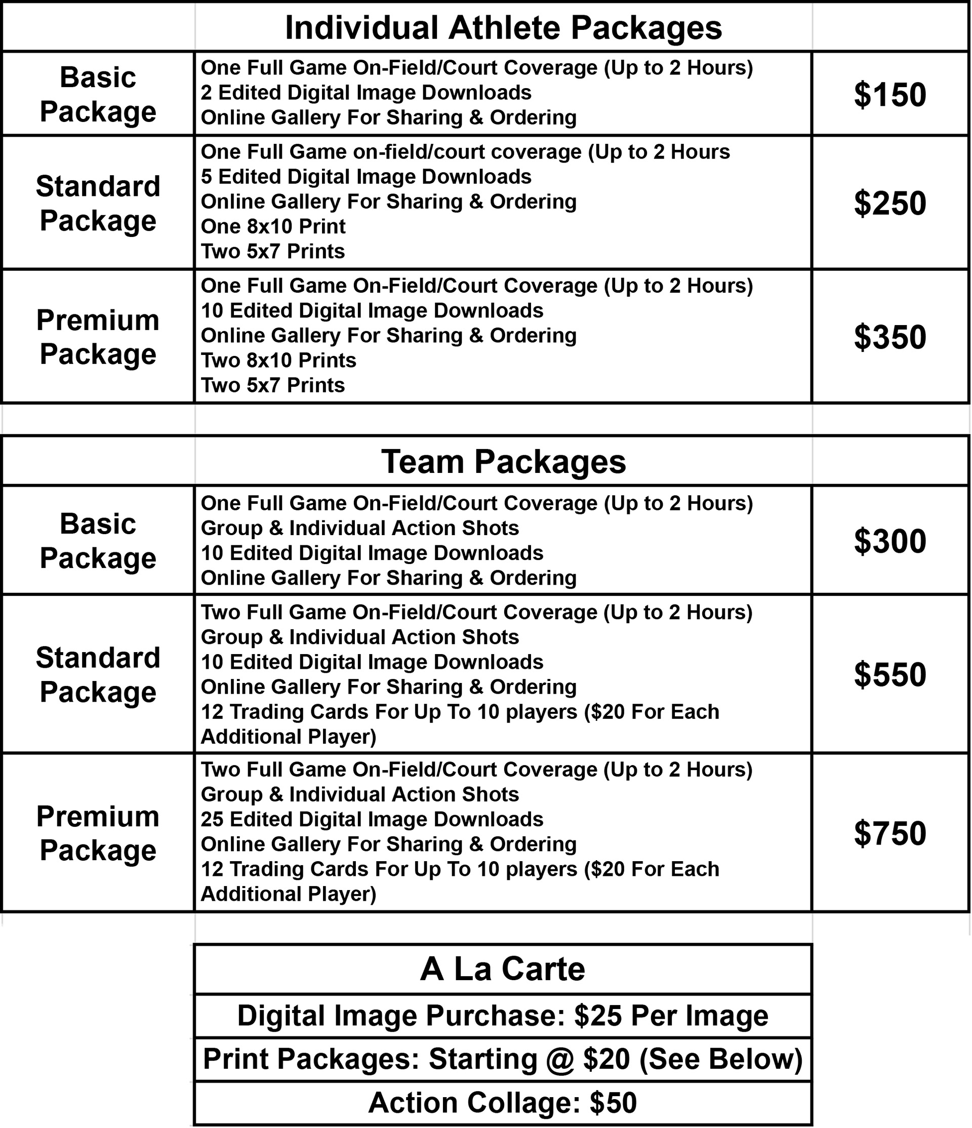 Youth League, Club & School Photography Print Packages